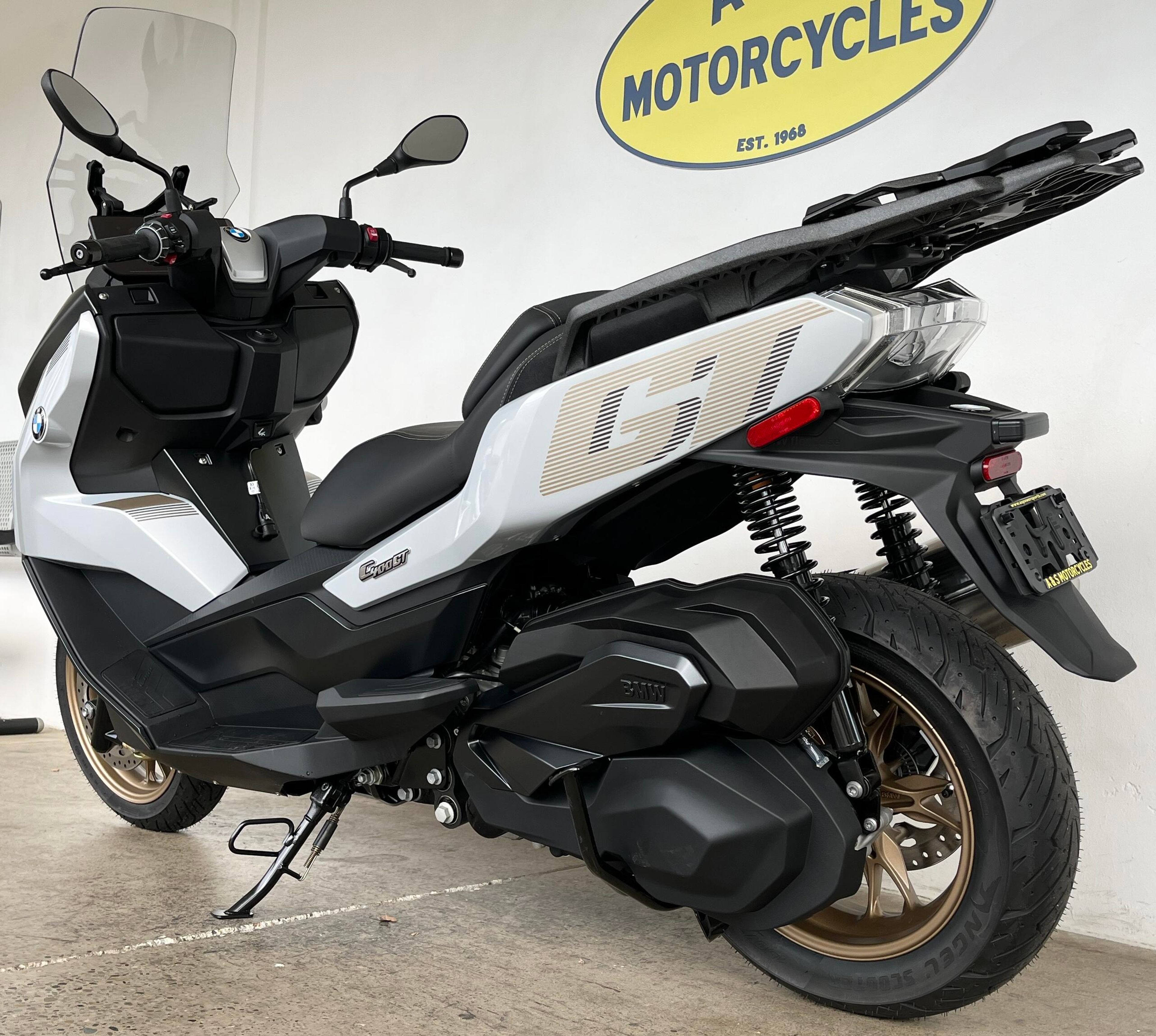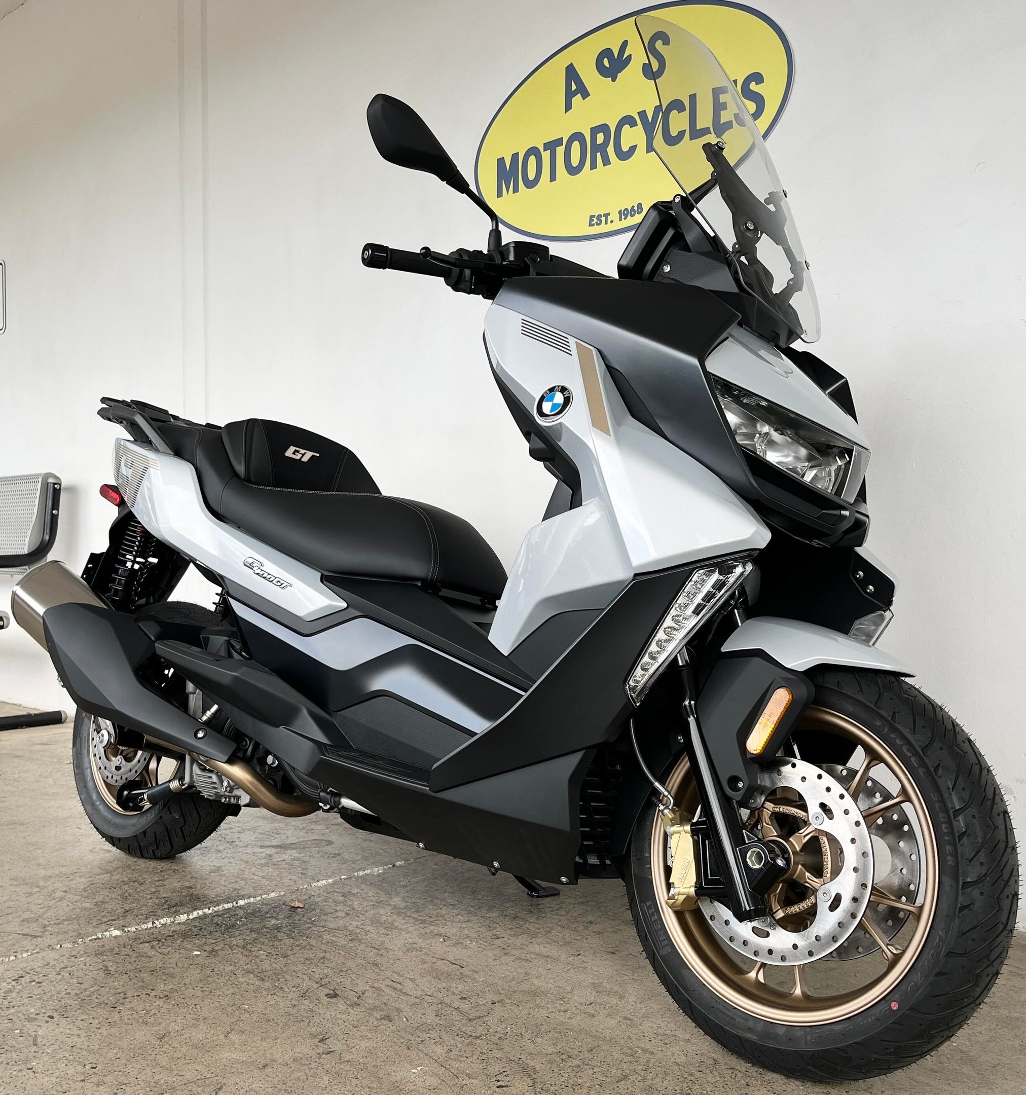 Mid-size scooter for maxi-size requirements. After the update, its exclusive design in particular makes the BMW C 400 GT the gold standard for the city and the countryside. In the new Exclusive design option, it takes you from A to B in particularly elegant style with golden highlights. It has also made significant gains in terms of ergonomics and, above all, storage space. As always, performance, handling and braking power are outstanding. In short: the ideal scooter for smart mobility. Hop on and feel #PluggedToLife.