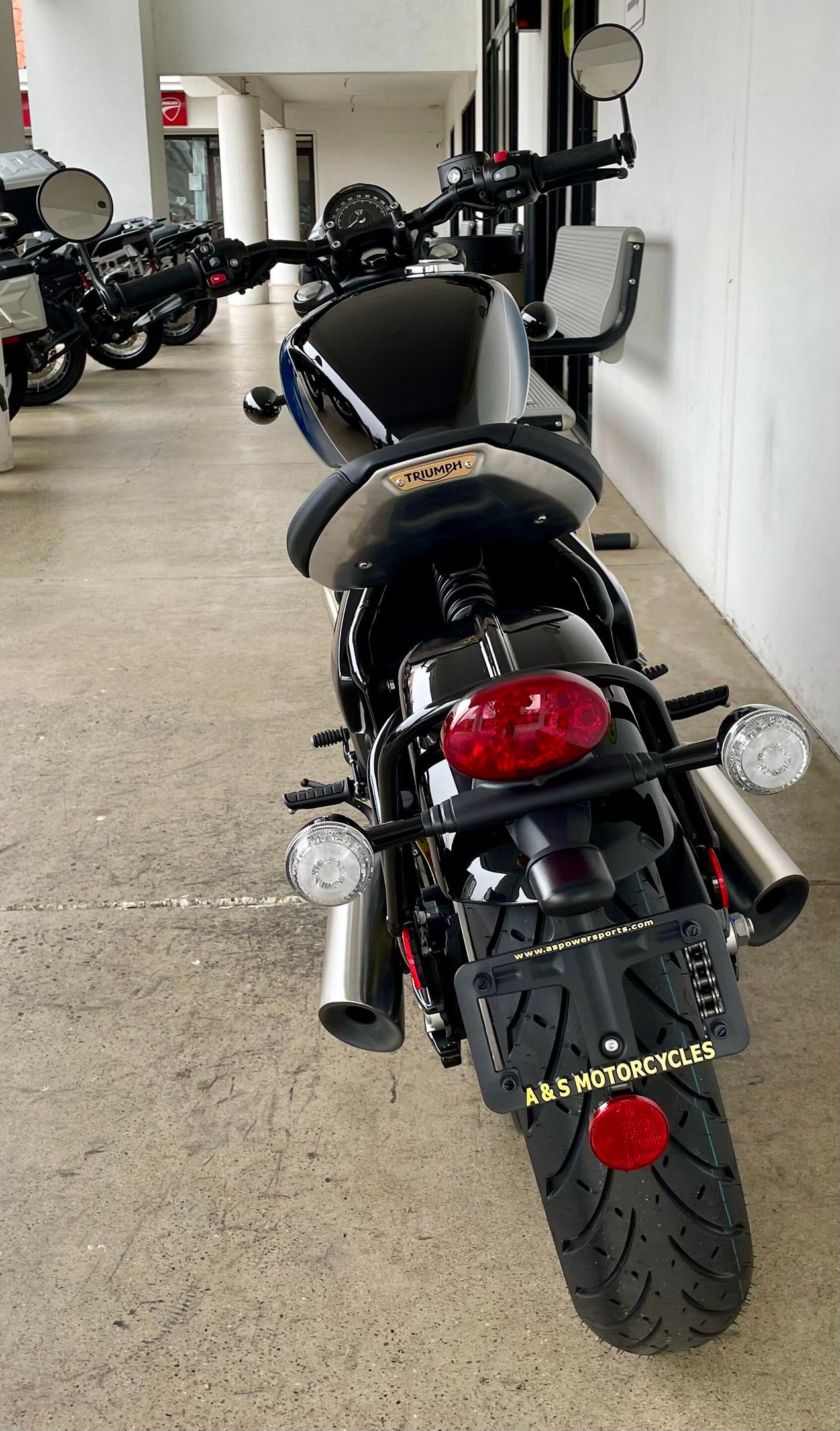Note: where stock images are used, photos may include accessories or options that are not included on the motorcycle for sale. -- * All advertised vehicles are subject to prior sale. We reserve the right to make changes without notice, and are not responsible for errors or omissions. New vehicles sold by A&S Motorcycles are subject to freight, title transfer and document preparation fees and some may have a set up fee which will be listed as additional dealer markup on hang tags in the store. Vehicle sales within California are subject to state sales tax, and license fees. If you are not a California resident but take delivery within California, you pay CA sales tax at the Roseville CA rate and a title transfer fee. If you take delivery outside California, laws regarding titling, and taxes vary from state to state; please contact your local Department of Motor Vehicles for information. Some states have a reciprocal tax agreement with California. *Trade-ins: A&S Motorcycles can accept your motorcycle, scooter or ATV in trade toward the purchase of a motorcycle. Please call today! All trades are subject to mechanical inspection by our service dept. -- * For over 50 years, A&S Motorcycles has been the premiere Sacramento area motorcycle shop. We specialize in fine European machines from BMW, Ducati, Triumph and Royal Enfield. We've earned our reputation by offering the best bikes, new and used, along with excellent customer service. Whether you need parts, riding gear or accessories to make your bike unique, we are here for you. It's About the Ride! -- A&S Motorcycles | DLR # 05872 | 916-726-7334 | www.aspowersports.com | It's About the Ride!