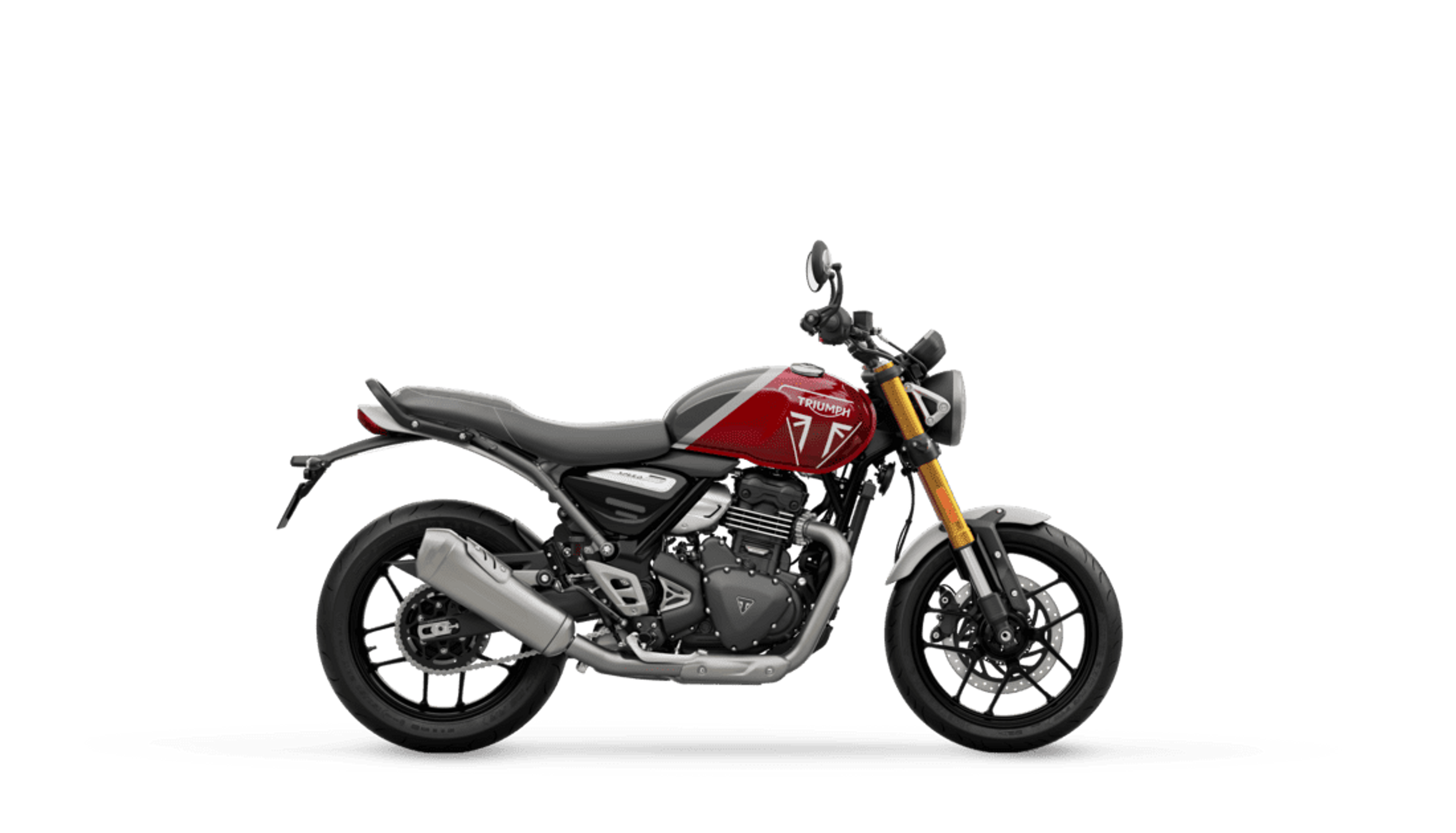 • SECURITY: The Speed 400 is equipped with a steering lock and anti-theft immobilizer as standard. A unique security chip is integrated into the ignition key to ensure only the owner can start the engine.