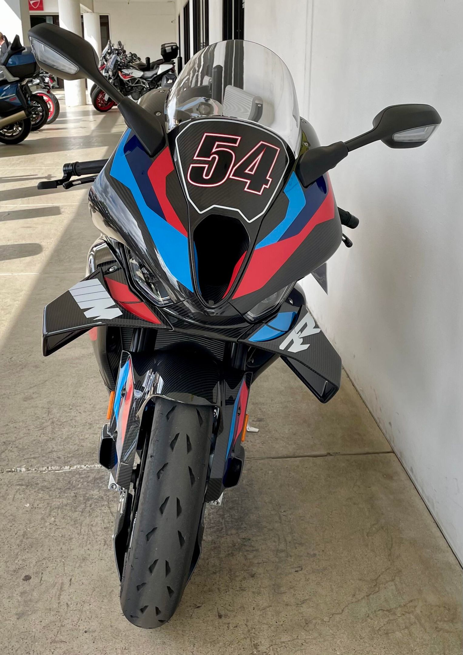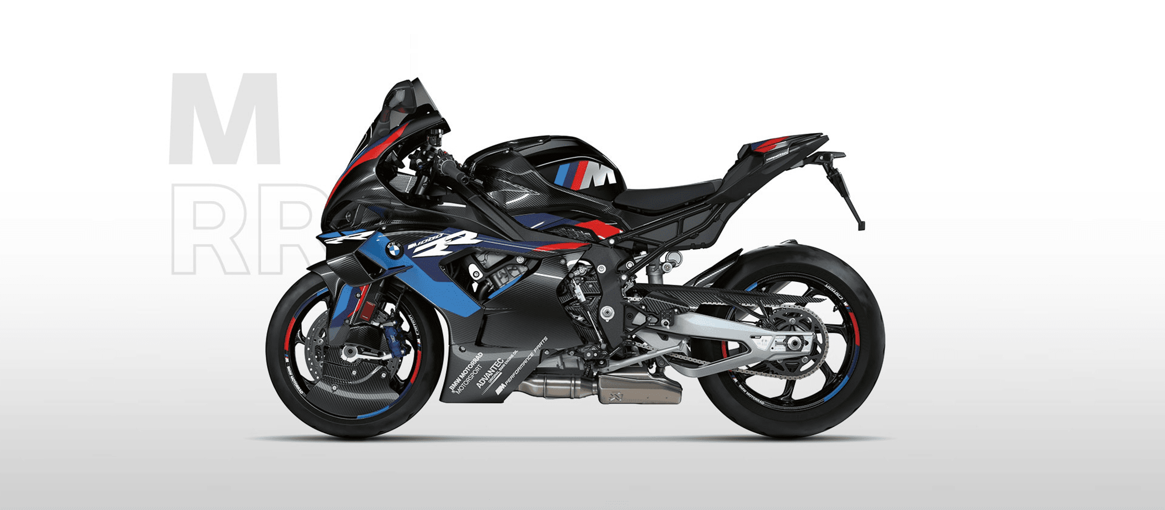 For all those driven by their passion and ready to take on challenges. For all those who refuse to give up one single millimeter or millisecond: The BMW M RR is the superbike homologated for racing. It was optimized in the wind tunnel and further developed on the circuit. It has optimized aerodynamics and uses carbon, resulting in a higher top speed. Its engine and chassis remain as powerful and direct as ever. The M RR stands for absolute performance and exclusivity down to the last detail. Just the typical M.
