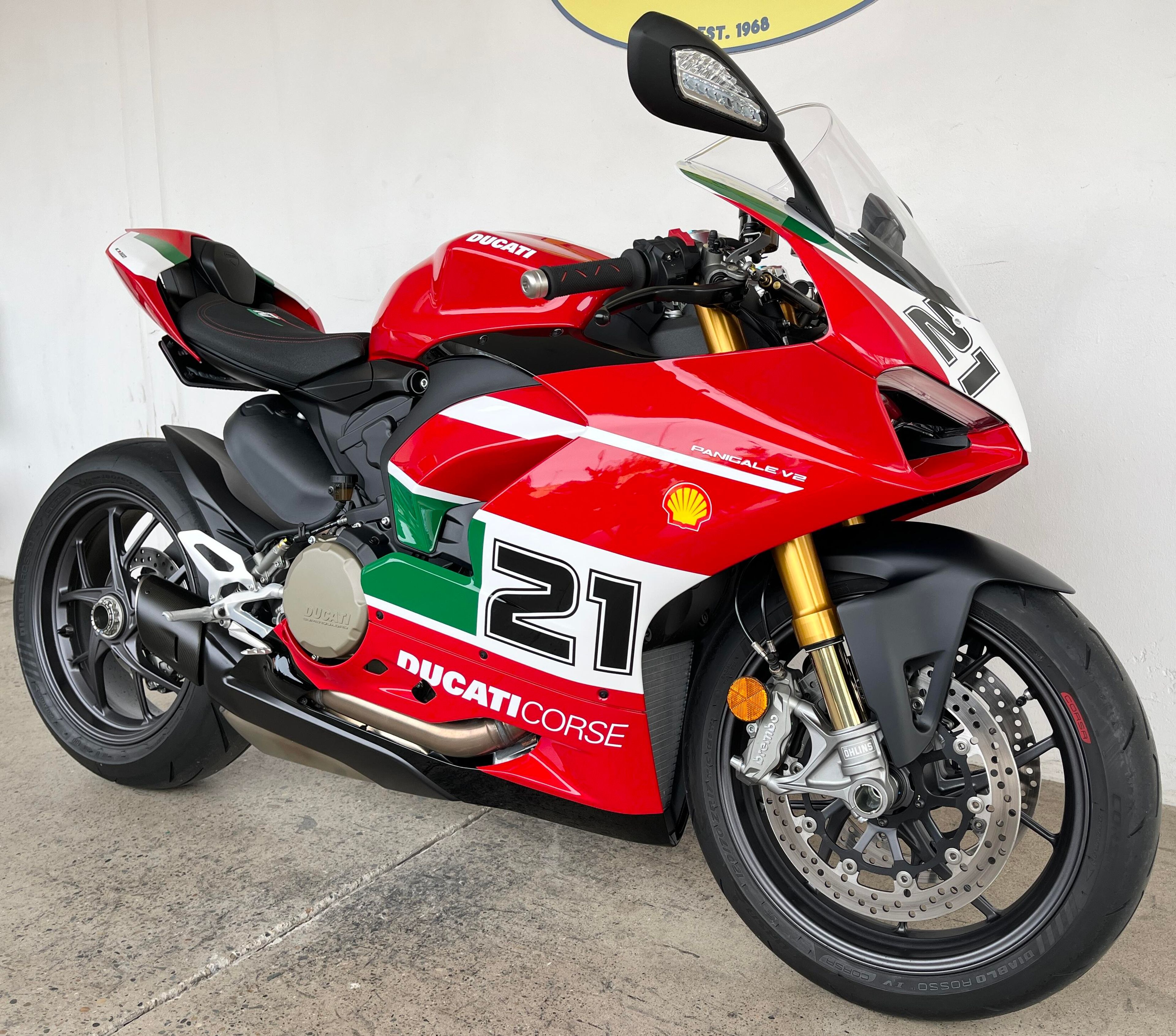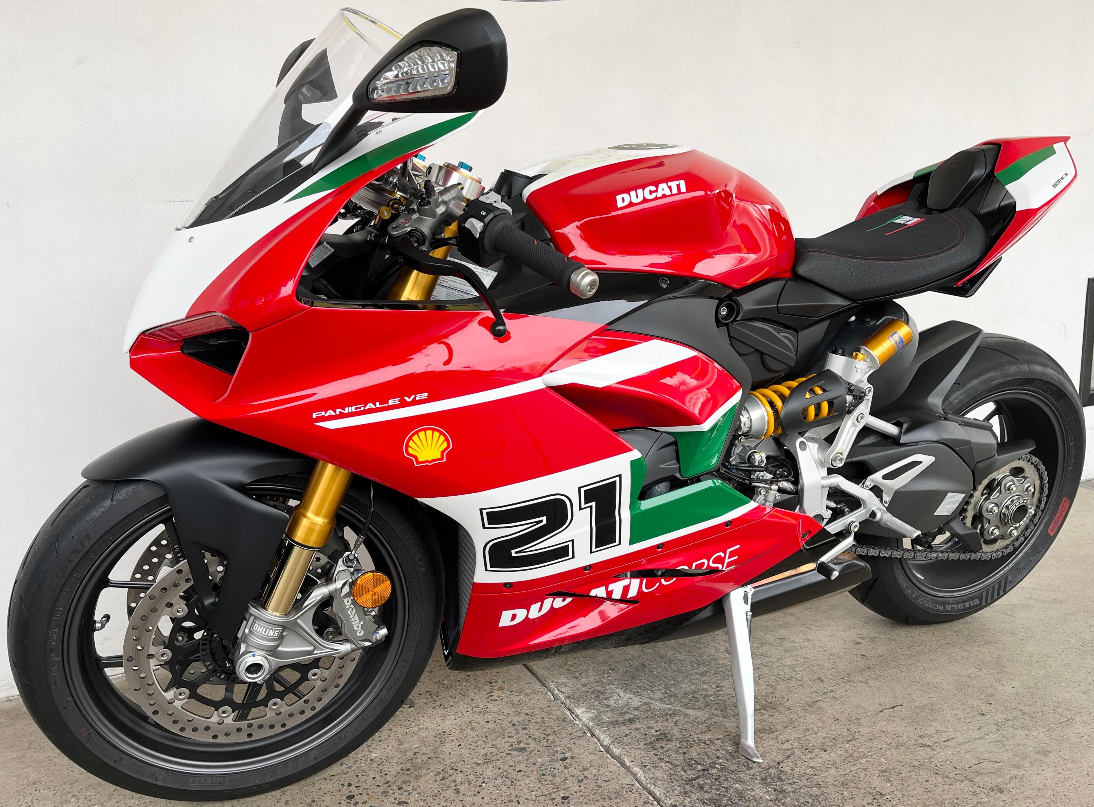 Based on the Panigale V2, this version is made unique by the special livery, inspired by the 996 R on which Bayliss won his very first world championship title in 2001, and by the prestigious Öhlins components, that bring the track performance of the Panigale V2 Bayliss 1st Championship 20th Anniversary to a whole new level.